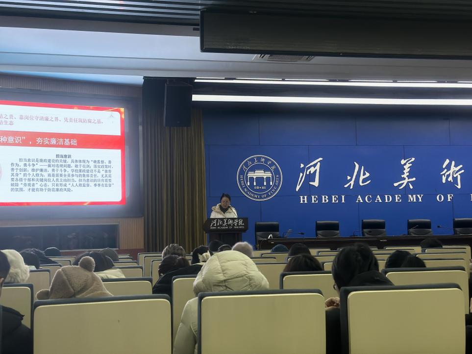 为深入贯彻党中央关于作风建设的决策部署及河北省委工作要求,落实学校“晏清” 廉洁文化建设工作安排,切实强化支部党员干部及教职工的廉洁自律意识,11 月 26 日,基础教学部直属党支部在正成国际报告厅开展“晏清” 廉洁教育专题活动。活动由基础教学部王志红副主任主持并讲话,支部全体党员、教职工代表参加。